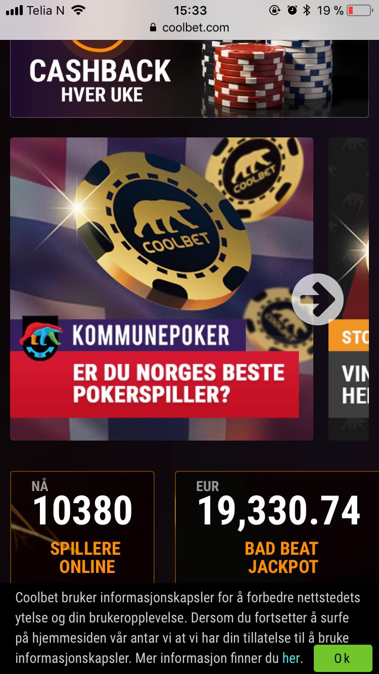 Sveip til høyre for å finne fanen med ”POKER”. Trykk på den!