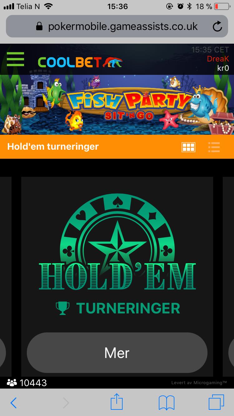 Trykk så der det står ”MER” under ”HOLD´EM TURNERINGER”.