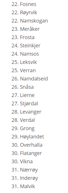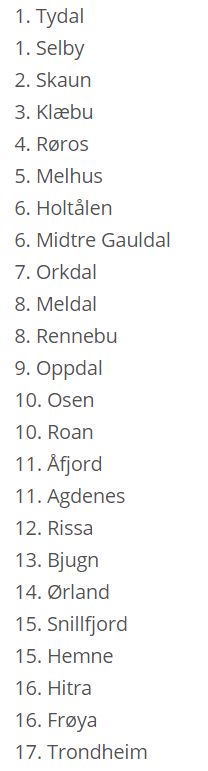Vi starter med Fosnes og avslutter med Trondheim.